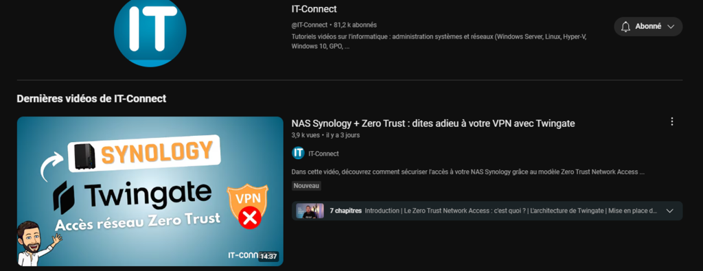 J’utilise aussi youtube avec des chaines spécialisées comme IT Connect